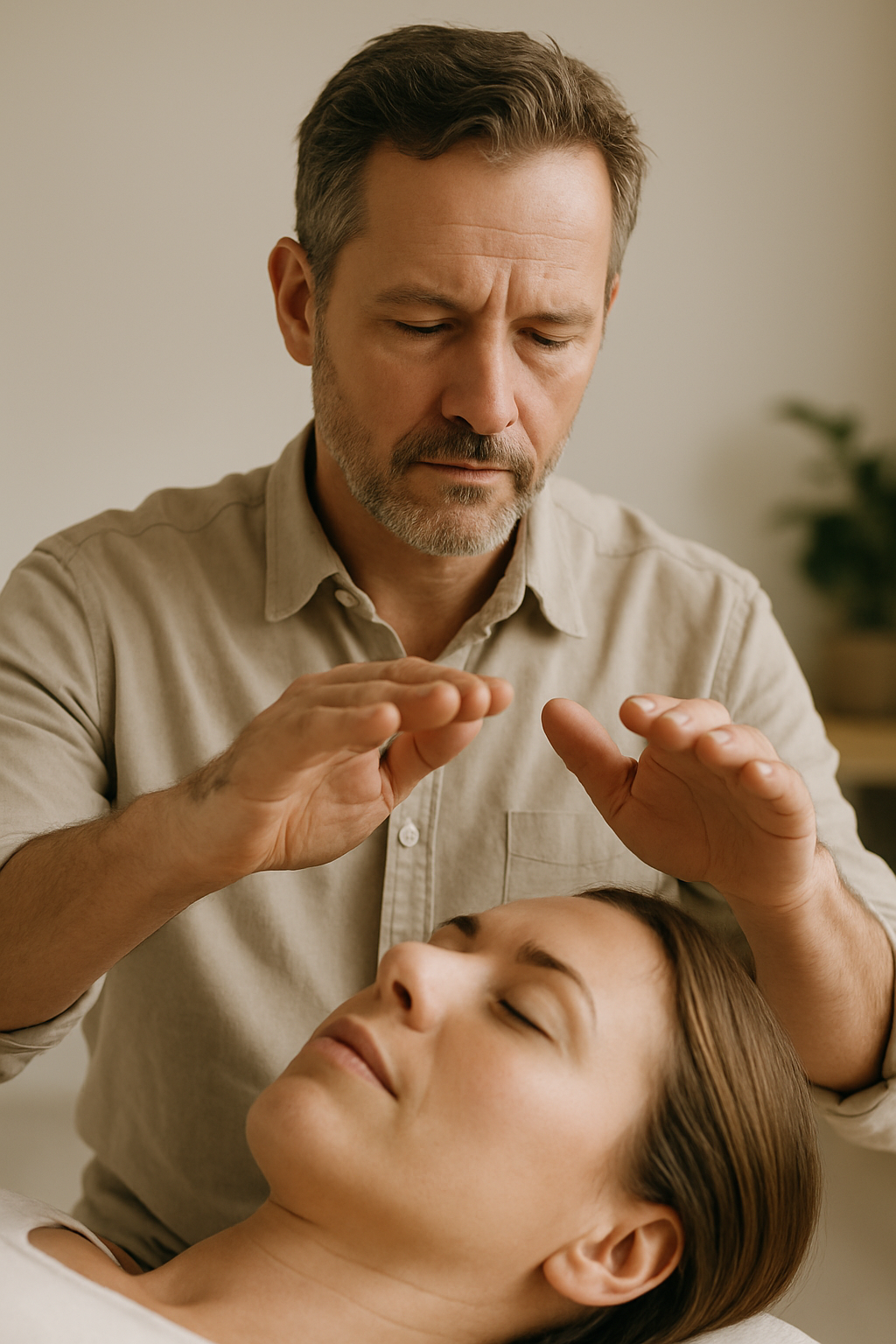 Apres discussion et exposition des troubles pour lesquels la personne vient me voir, le sujet est soi assis soit allongé. Je détermine avec mes mains placées au-dessus du corps quels sont les zones de tensions et de blocages et je recherche toutes les informations que le corps me donne, je désature les énergies négatives et les remplace par imposition des mains ou bien par des passes magnétiques comme le faisaient nos anciens et dans la plus pure tradition ancestrale.
